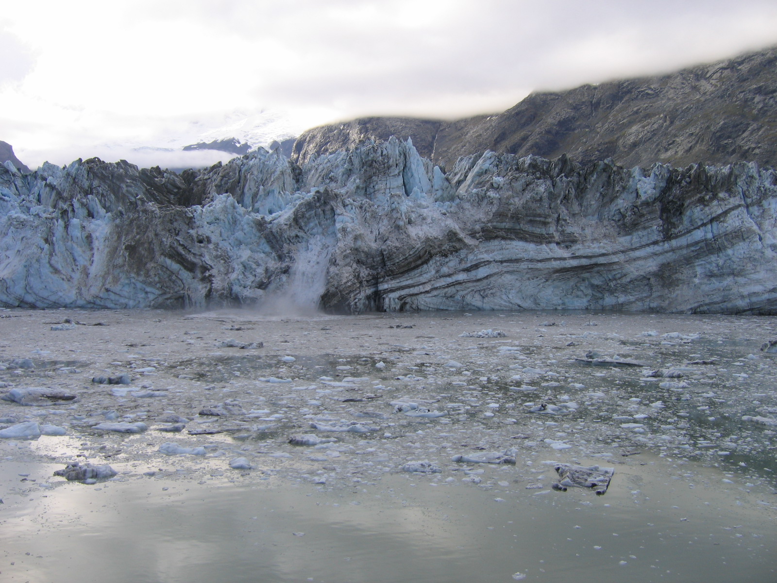 My first trip to Alaska was in 1982. I was overwhelmed by the beauty of this State, the mountainous terrain and especially the glaciers, their pristine ‘white’ and as the sun hit the ice was very blue, like a summer sky. I marvelled at the apparent flowing of ice into a colorful meadow with thousands of wildflowers. You could walk to the edge of it. Cruising to the Columbia Glacier Bay we had to wait for hours to see any ‘calving’ – the breaking off of shanks of ice and plunging into the sea. Seals with their round black shining eyes and seabirds were waiting on ice floats for a passing fish and elegantly diving in or sliding off to catch their meal. What impressed me most was the incredible stillness and on and off the cracking in the glaciers sometimes evolving in a roar when a large piece just slid off and, causing a huge fountain of water, disappeared. Our cruise ship crew would lower a life boat and try to bring up some big pieces of ice. Some of the crew were masters in creating fantastic carvings which would grace the midnight buffet tables. We were treated with the smaller pieces in special drinks and if you would let the ice melt or take it into your mouth it tasted good. We were even allowed to keep the tall fancy glasses as souvenirs.